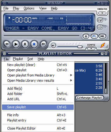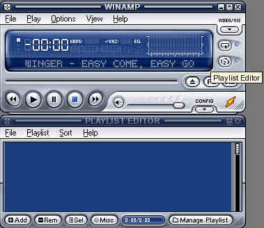 The small box opens up underneath WinAmp called the Play List Editor; that is what we will