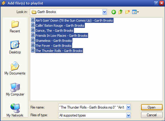 Once you have picked out the songs you want to add to the play list, simply click the Open