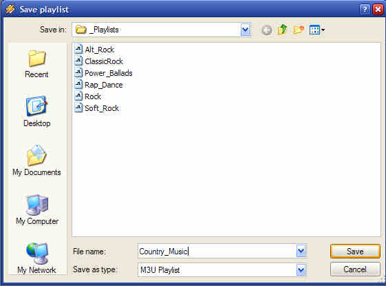 adding songs to your play list simply click on File and then Save Play list: